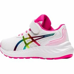 The ASICS Pre-Excite 9 (Pre-School) shoes are formed with energized design details. The shoes offer high-quality breathability with fewer layers on the upper to reduce irritation in the forefoot. Meanwhile, the ASICS Stripes on the sides are rendered with a rainbow overlay for an eye-catching look. ASICS also integrated a Cub Match sockliner that uses a tiger graphic to help kids recognize the left shoe from the right shoe. Lastly, durable properties, like the toe rubber stitching and solid rubber outsole are designed to expand the shoeβs lifespan. Style: 1014A280.